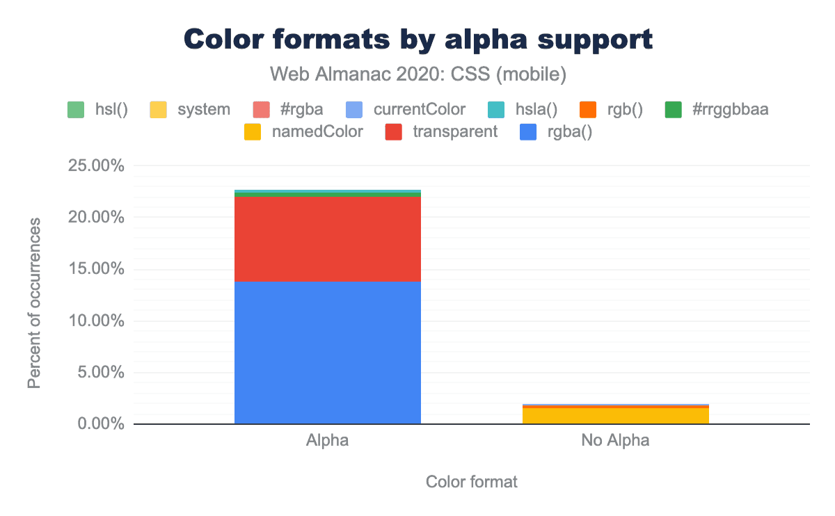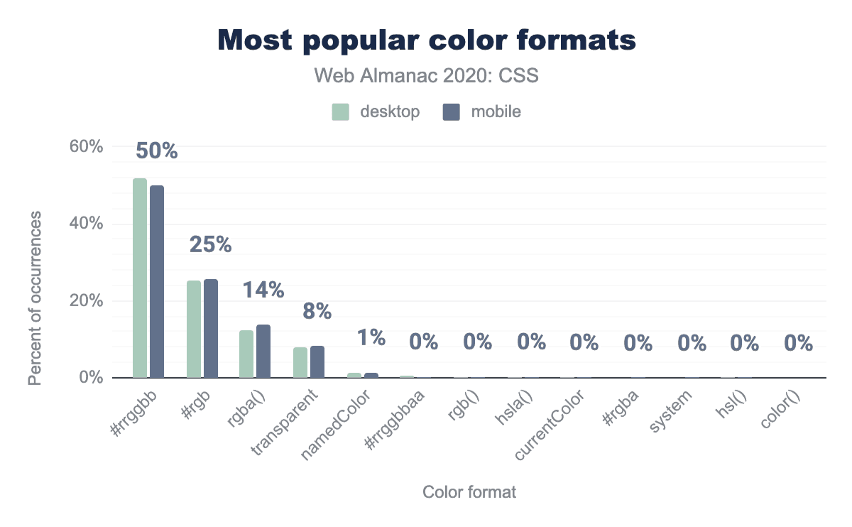 We’ve known for a while that developers need color modification functions and are working on them in CSS Color 5. However, analyzing SCSS function calls gives us hard data to prove just how necessary color modification functions are, and also tells us which types of color modifications are most commonly needed.