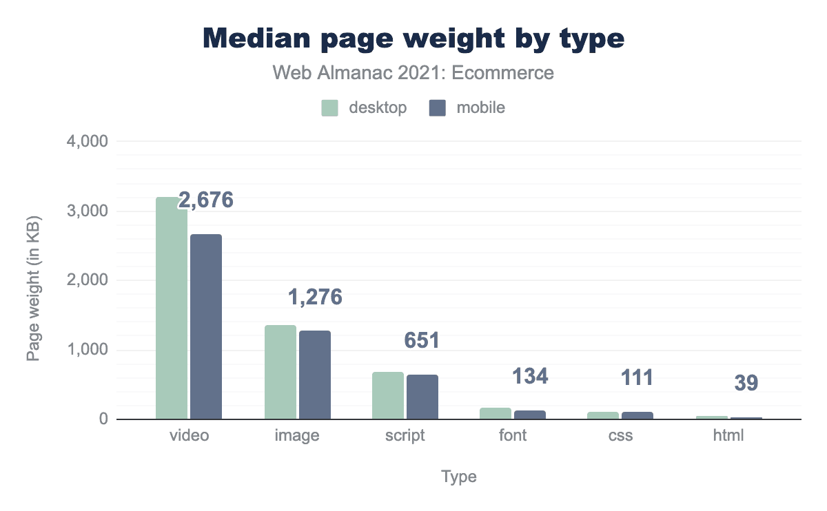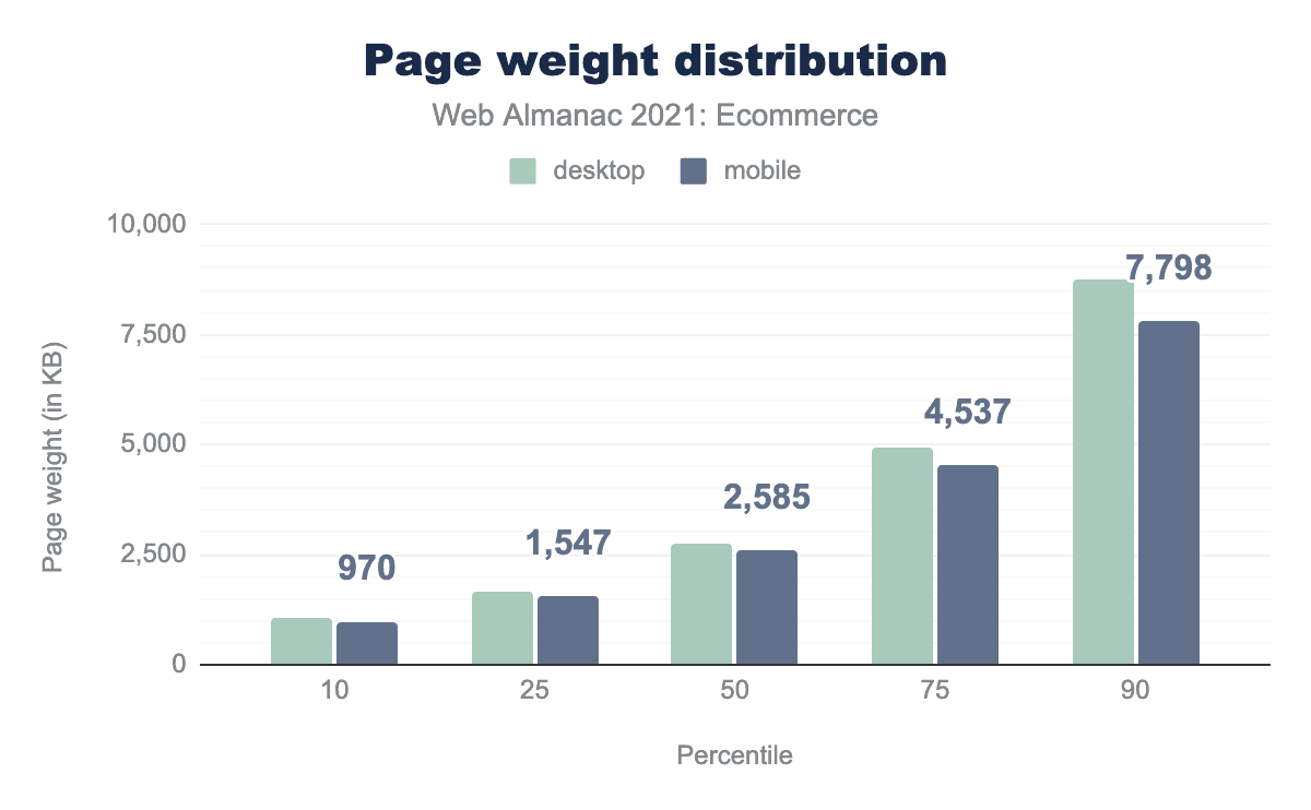 Our analysis considered mobile and desktop websites. These sites are those that are actively visited by Chrome users, see the Methodology for more information. Most of the websites visited are in both result sets but some are only in one. We will often share statistics for mobile and desktop. When there is little variation, we may choose to only show one. In this case, unless otherwise noted, only the mobile metrics will be shown.