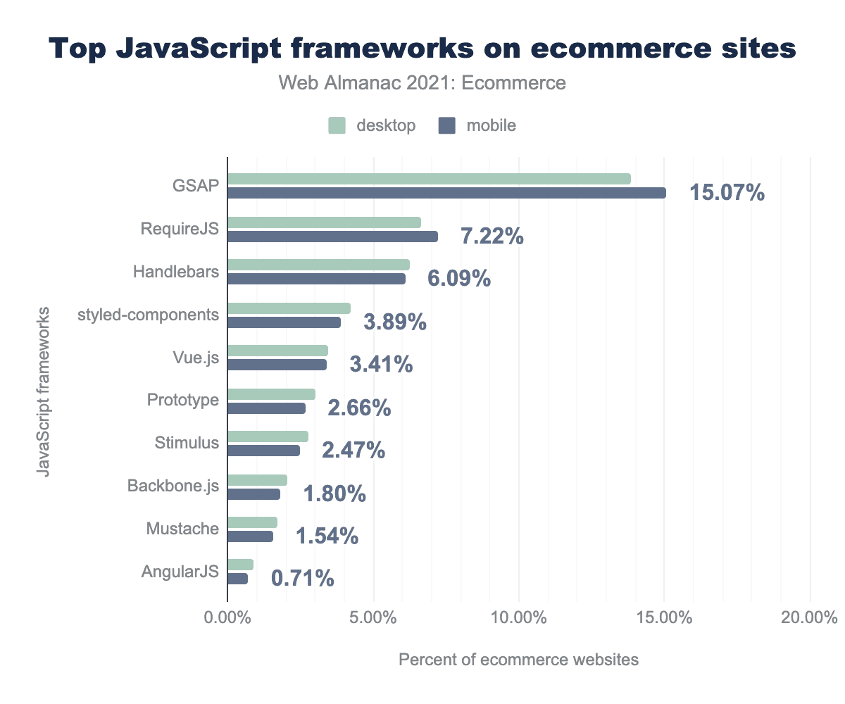 Figure 17.27. Top JavaScript frameworks on ecommerce sites.