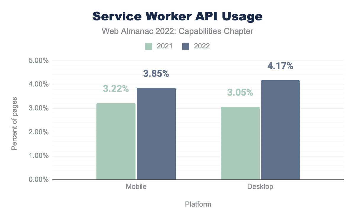 For a deeper dive into service worker usage on the web, check out the PWA chapter of the 2022 Web Almanac.