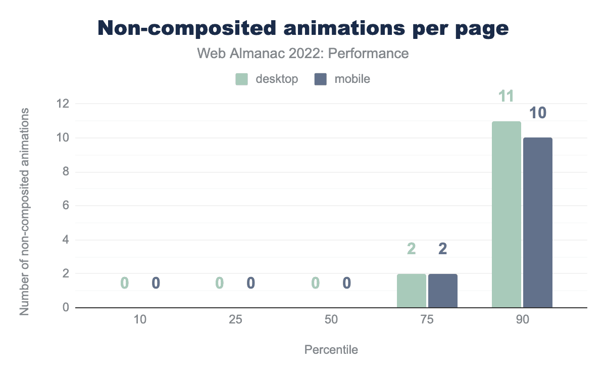 Surprisingly, there was no dramatic improvement in the percent of pages that have render-blocking resources. Only 20% of mobile pages pass the audit, which is a mere 1 percentage point increase over last year.