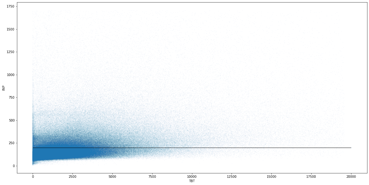 Scatterplot visualizing the correlation between INP and TBT. (Source)