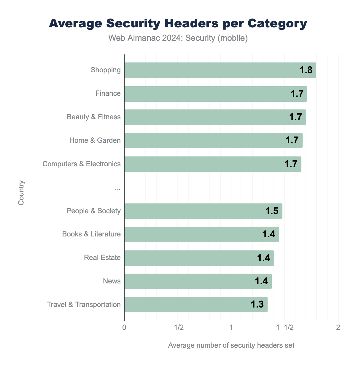 Figure 11.46. The average number of security headers by website category; top and bottom 5 categories.